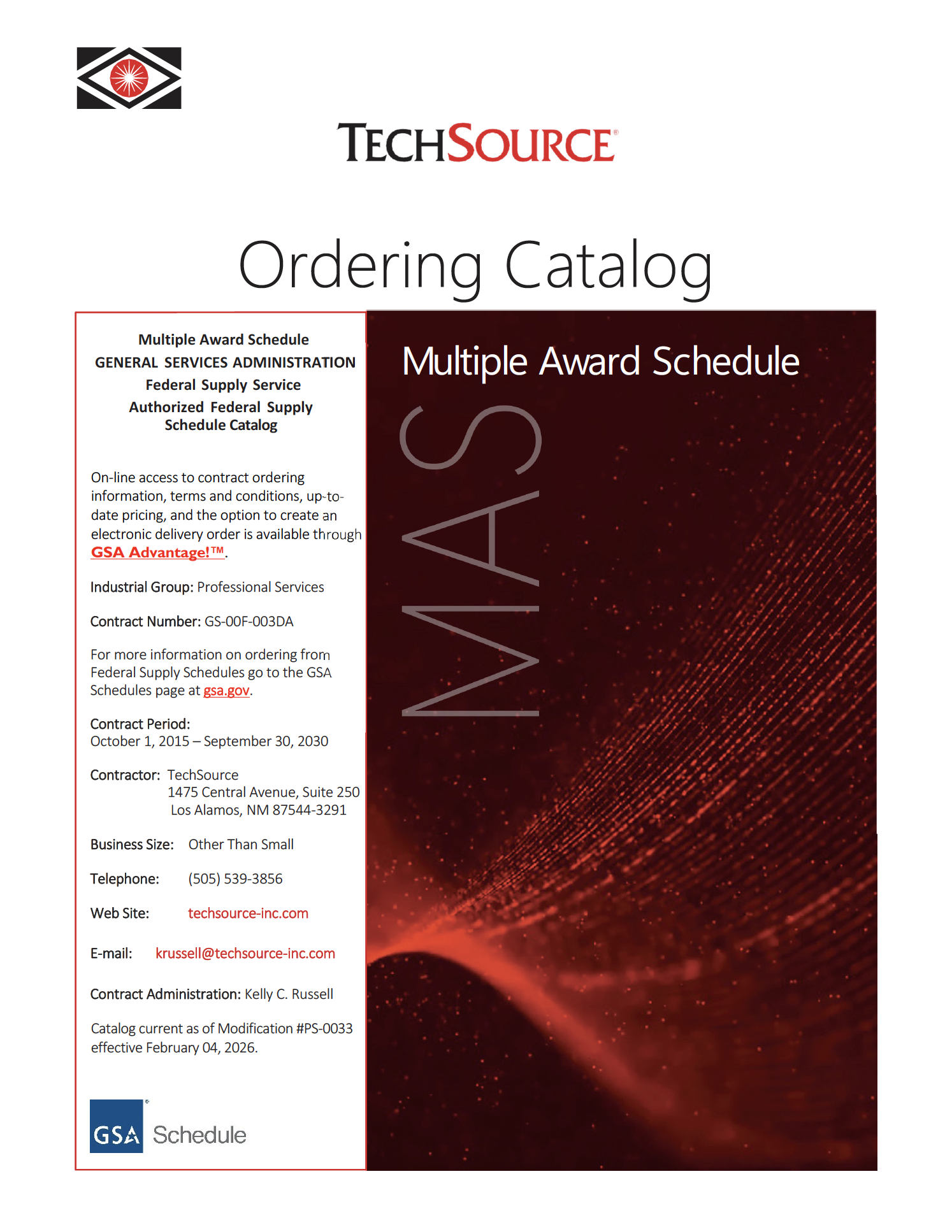 Under the MAS, TechSource offers a full range of life-cycle engineering services that can improve the performance, quality, timeliness, and efficiency of services and products provided by the federal government. Federal agency, office, programs, and projects use MAS vendors to assist throughout a program/product life-span in the conceptualization, design, development, and verification of products and services including:
